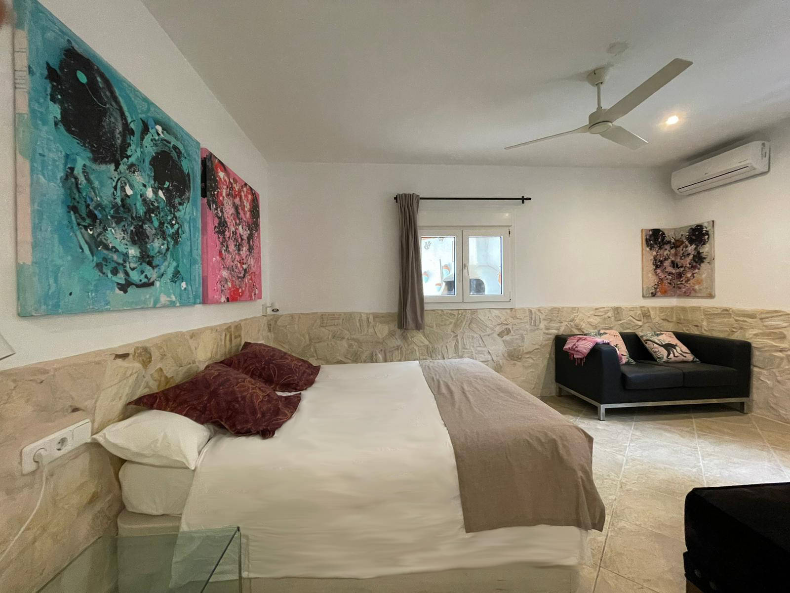 Ibiza-style principal suite, located in the main part of the house, with a terrace facing the bay of San Antonio and Cap Nono.